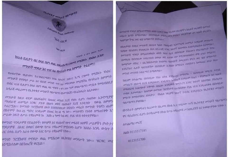 ባለሥልጣን ስምምነት ሲጋለጥ! የመንገዶች ባለሥልጣን ሲገነባው የኖረው መንገድ ከትግራይ ወደ ኦሮሚያ በማዞር ባለ ተራዎችን ይፋ አድርግ ውል ይህ አይን ያወጣ አድልዎ ሊያስገነባቸው ስምምነት ከፈረመባቸው ከአገሪቱ ካዝና እና ከዓለም ባንክ እና ሌሎች አበዳሪዎች በኢትዮጵያ ሕዝብ የሚመጣ ብድር እና እርዳታ እንደ ትላንት ለአንድ ወገን ያደላ ነውና ሊሰሩ ከታሰቡት 15 የመንገድ ፕሮጀክቶች 14ቱ አንድ ክልል ኦሮሚያ ማድረግ ስንቃወመው ይኖር ነውን አሳፋሪ አድልዎ መድገም ነው።